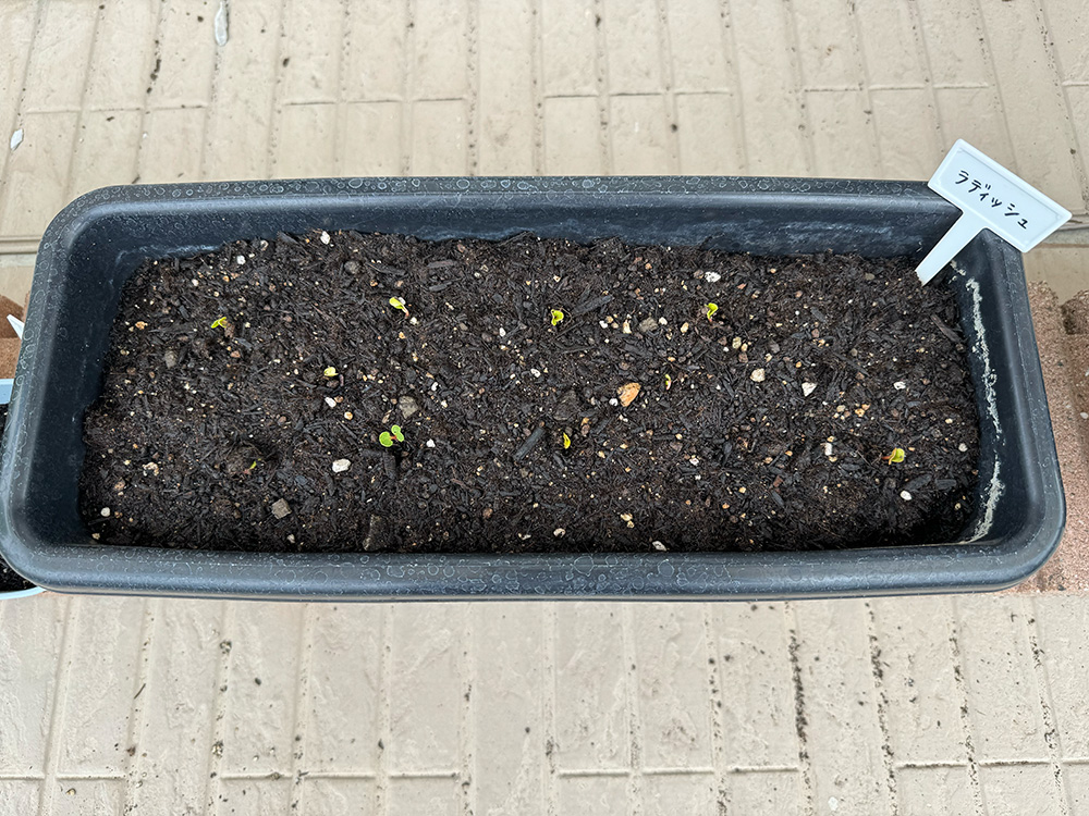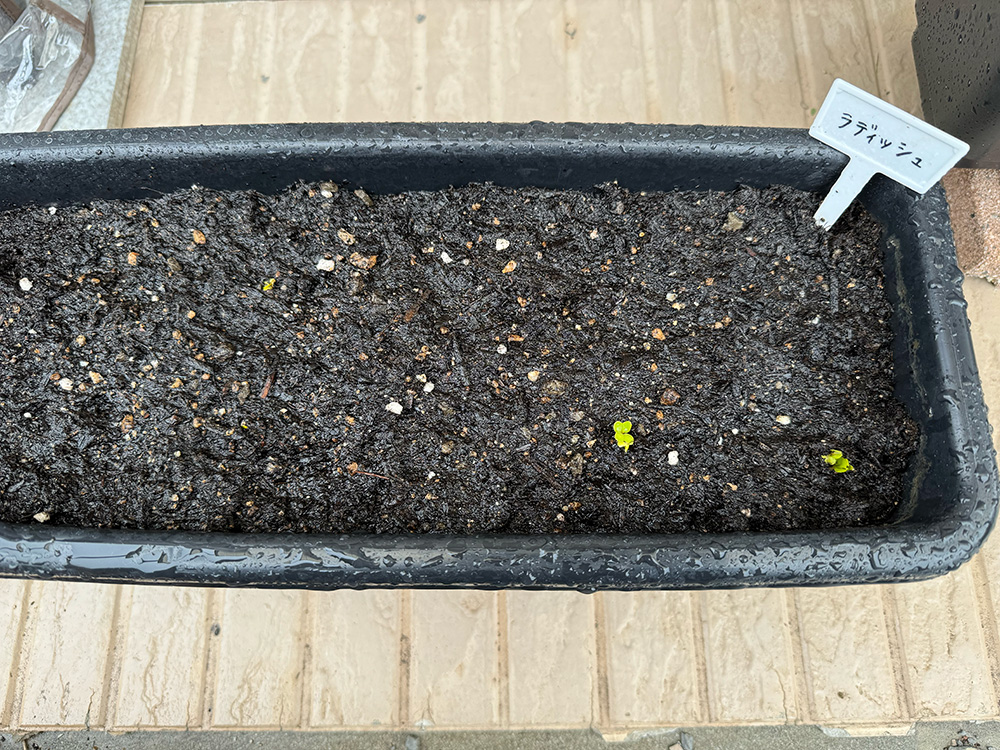 ラディッシュ(赤丸二十日大根) X Facebook はてブ Pocket LINE コピー 2024.03.162024.05.06 ラディッシュ(赤丸二十日大根)が収穫できるまで 2024.3.16種まき 2024.3.24発芽 2024.4.1アクシデント発生 強風のため、プランターがひっくり返ってしまった。再度種まき。 2024.4.6再度、発芽 2024.4.12本葉が出てきた 2024.04.19いつの間にか大きくなってた 2024.5.1収穫
